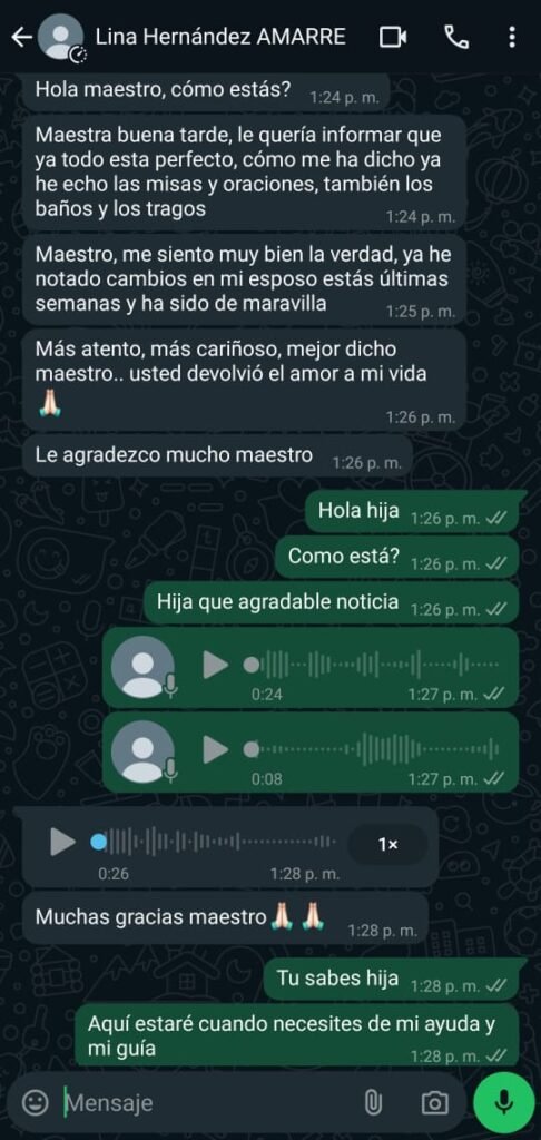 He ayudado a muchas personas en temas de amor, unión, protección y sanación espiritual, brindando una energía segura y poderosa que restaura la armonía y el equilibrio en sus vidas. Cada trabajo que realizo es cuidadoso y respetuoso, asegurando que nadie sufra ningún daño y que el amor y la paz fluyan libremente.